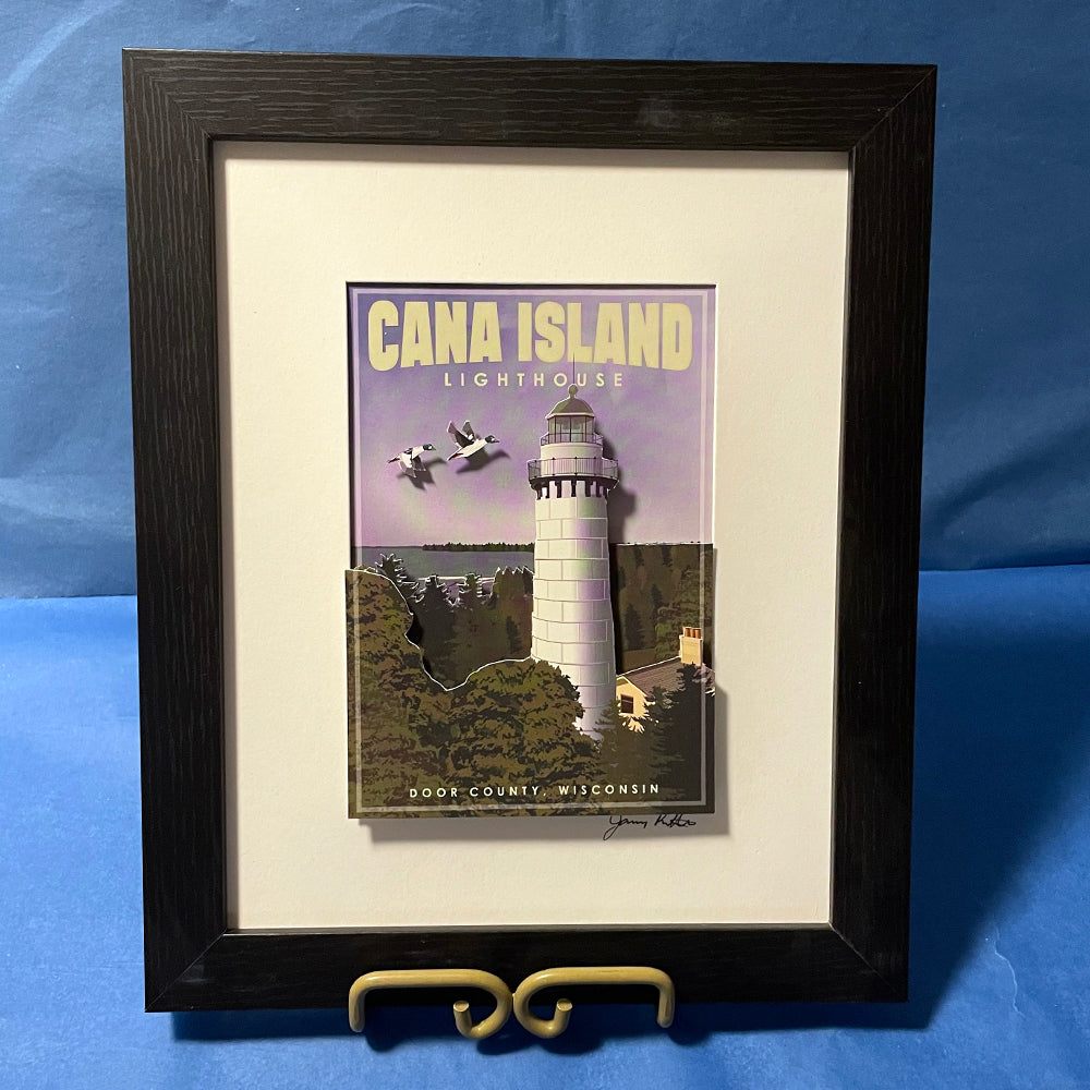 A dimensional tribute to the iconic Cana Island Lighthouse. Skillfully layered cards are precisely engineered to create striking depth and visual complexity, showcasing the architectural grace of this beloved Wisconsin landmark. A distinguished addition to any shelf, desk, or mantel.